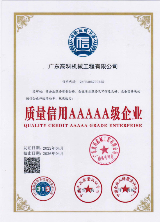名 稱:質量信用AAAAA級企業